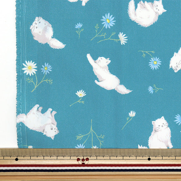 [はっ水加工 撥水加工 撥水生地 雨具 布 入園 入学 バッグ 袋物 猫 ねこ ネコ 動物 アニマル お花 フラワー 青 緑]
