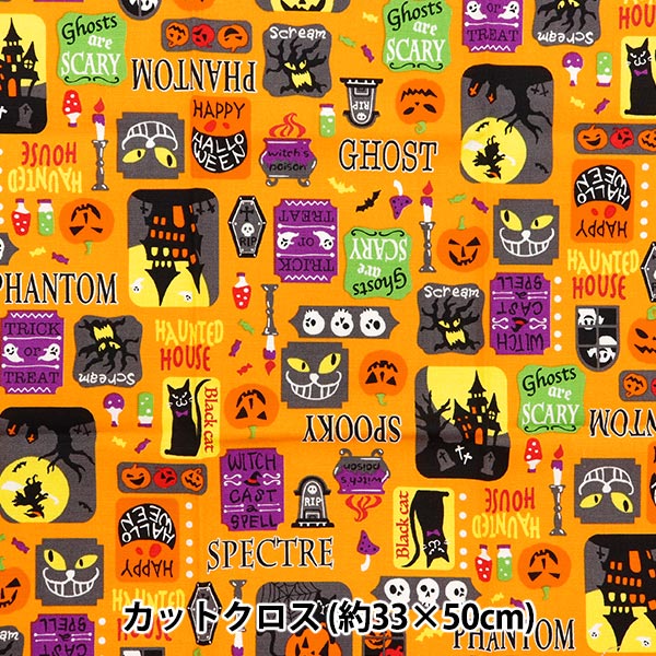 [布 HALLOWEEN トリックオアトリート パーティー ハロウィーン ジャックオランタン かぼちゃ おばけ ゴースト 橙]
