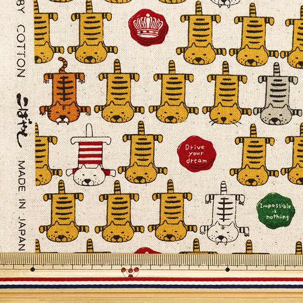 【数量5から】 生地 『綿麻キャンバス トラ猫 生成 KTS7052-A』 COTTON KOBAYASHI コットンこばやし 小林繊維