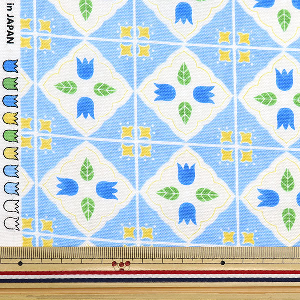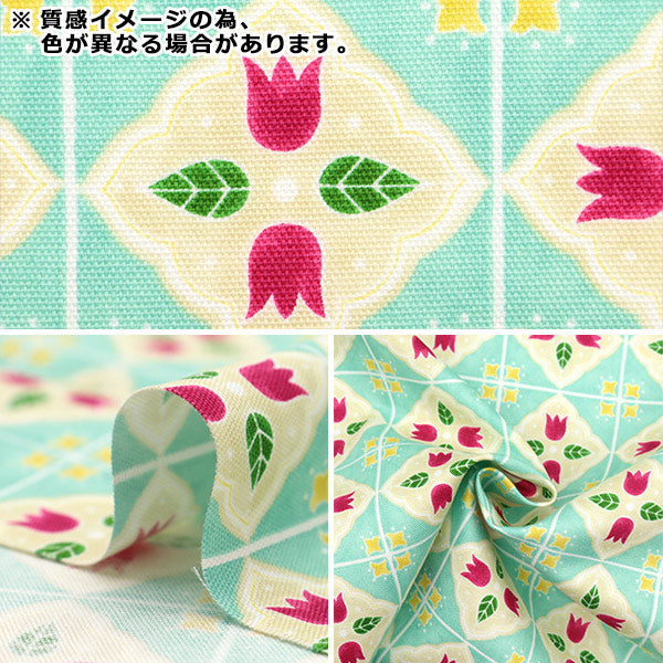 チューリップ柄のタイルを敷き詰めたような、レトロな雰囲気のオックス生地です。