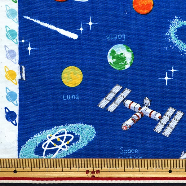 [SF 宇宙 ロケット 惑星 宇宙船 宇宙飛行士 布 入園入学 青 濃ブルー]