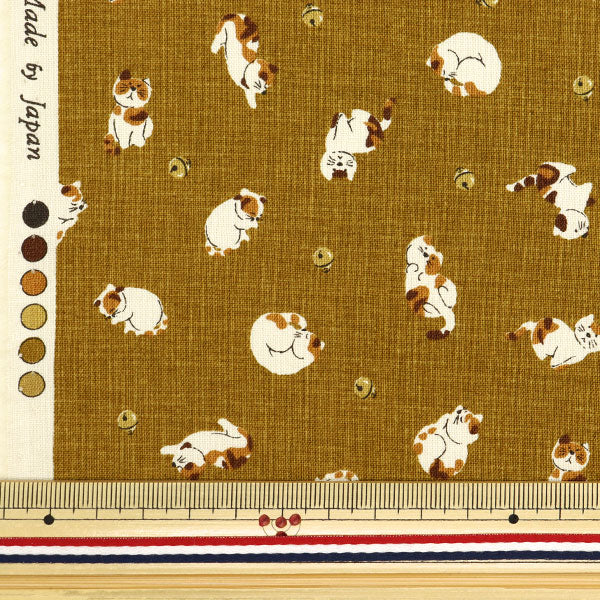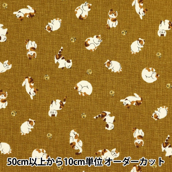 【数量5から】 生地 『シーチング 和柄 すず猫 カラシ 88234-4-3』