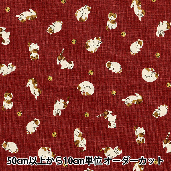 【数量5から】 生地 『シーチング 和柄 すず猫 アカ 88234-4-4』