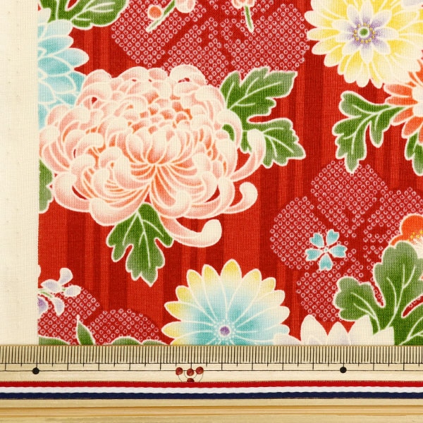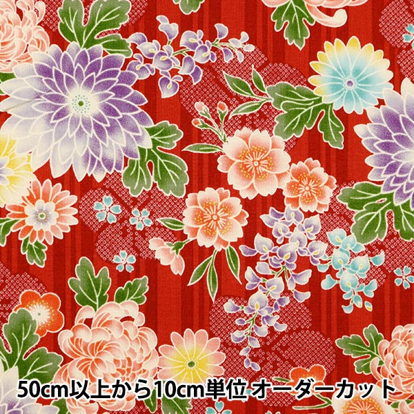 【数量5から】 生地 『スケア 縞に花模様 赤 850425-1-3』