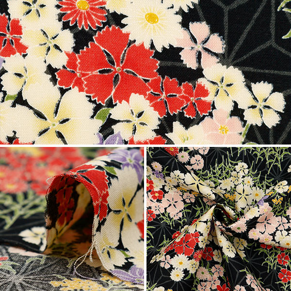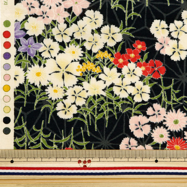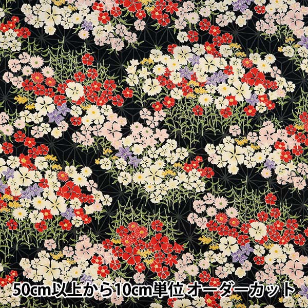 【数量5から】 生地 『スケア 麻の葉に撫子 黒 850426-1-1』