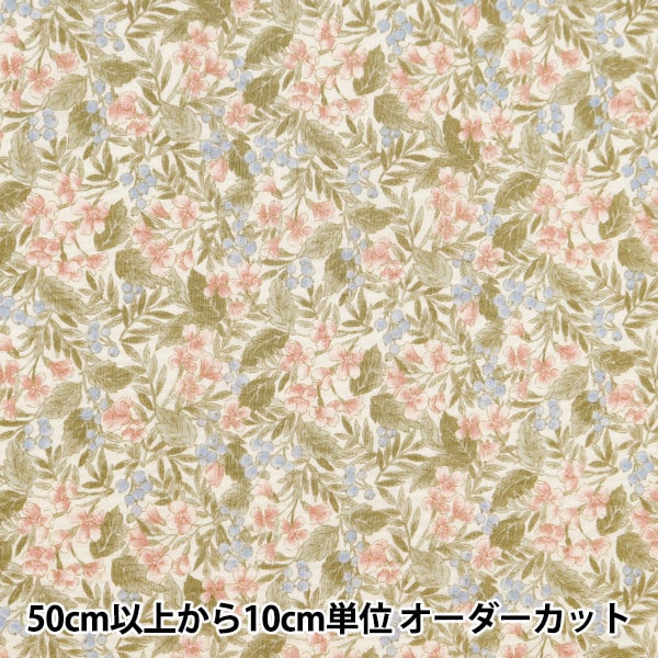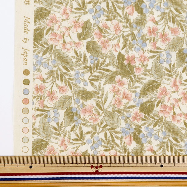 【数量5から】 生地 『スケア ボタニカルベリーフラワー ナチュラル×ピンク 850443-1-2』
