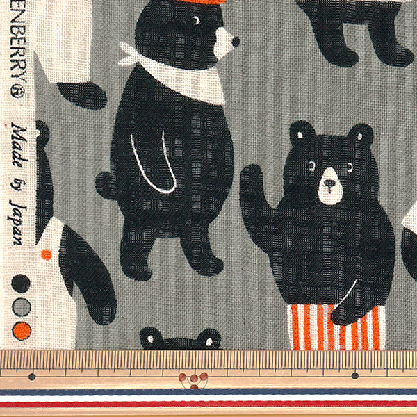 [夏生地 春夏 リネンライク スラブ 綿 布 ソーイング 手芸 ハンドメイド 熊 クマ くま 大柄 灰色 グレー]