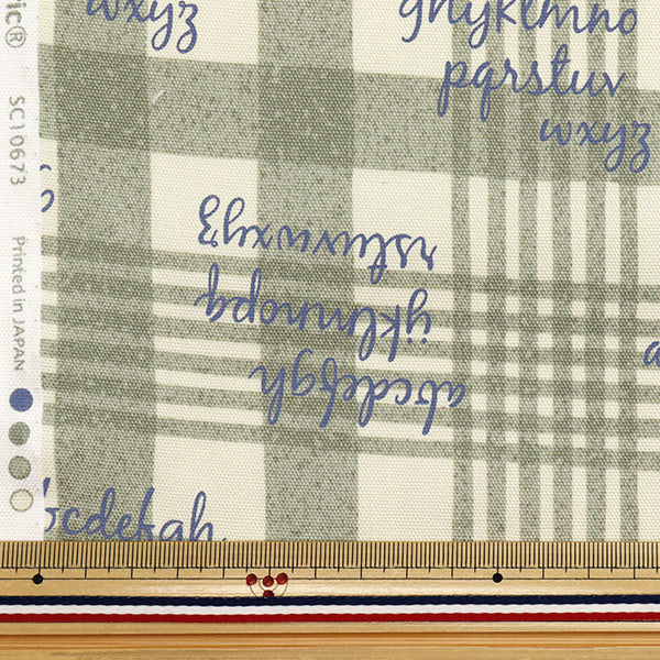 やわらかい格子柄に、筆記体のa〜zのアルファベットがポイントのデザインです。