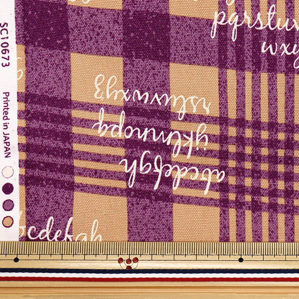 【数量5から】 生地 『オックス チェック&アルファベット アプリコット×パープル SC10673S-C』