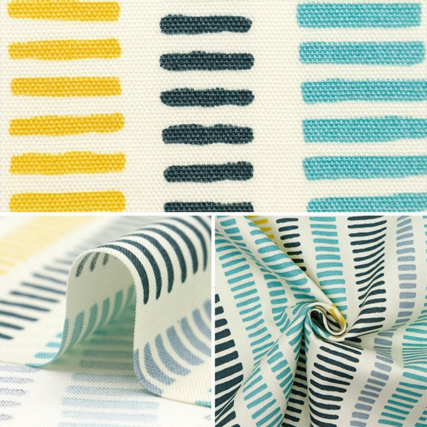 北欧風の不ぞろいなドットのようなボーダーのようなプリントのオックス生地。