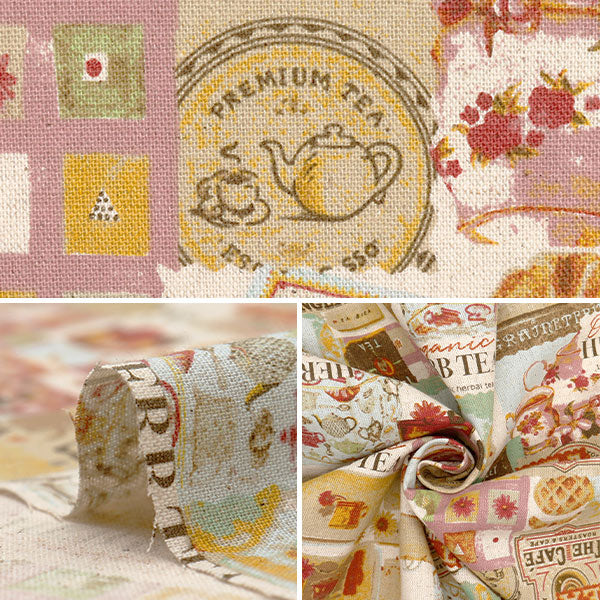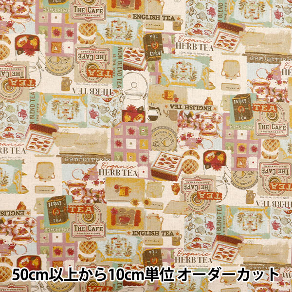 [布 コットンリネン 綿麻 ビンテージ風 スイーツ ティータイム ソーイング 手芸 ハンドメイド マルチカラー]