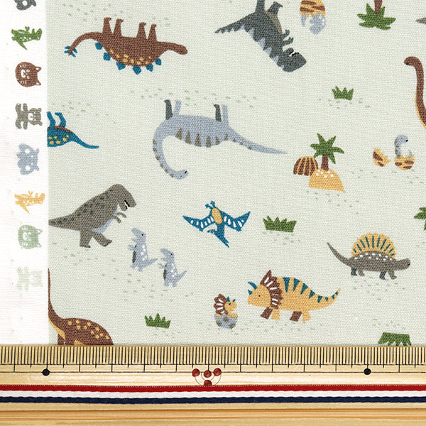 [布 ソーイング ハンドメイド 入園 入学 ダイナソー きょうりゅう 古代生物 薄緑]