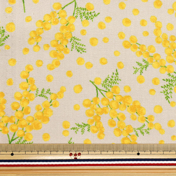 [布 服飾 ソーイング ハンドメイド 手作り 小物 袋物 トートバッグ インテリア 生活雑貨 花柄 植物 ミモザ ベージュ ライトグレー]
