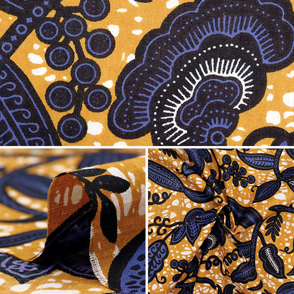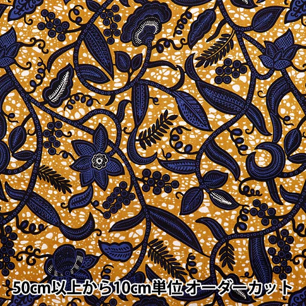 [布 アフリカン ソーイング ハンドメイド インド綿 黄色 イエロー 紺 ネイビー]