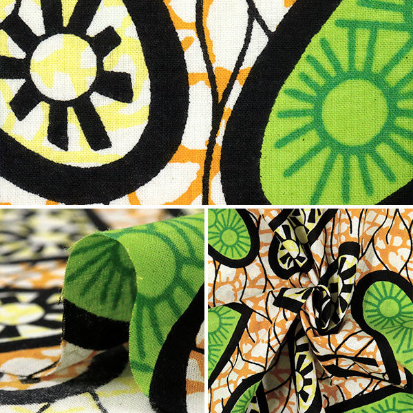 [布 アフリカン ソーイング ハンドメイド インド綿 黄緑 黄色 グリーン イエロー]