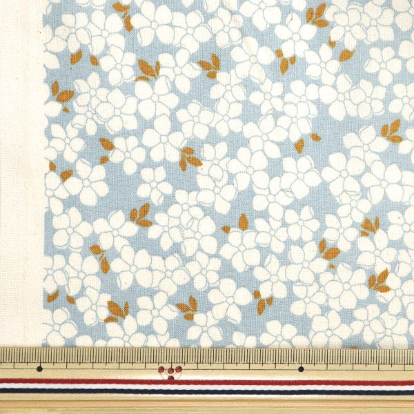 [布 洋裁 植物 フラワー 水色 灰色]