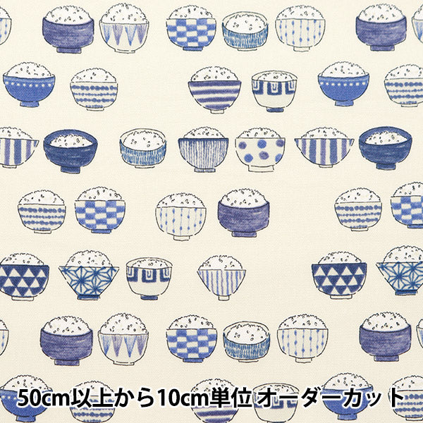 【数量5から】 生地 『オックス おいしい生地 ごはん柄 ホワイト YKA-16070-1B』 KOKKA コッカ
