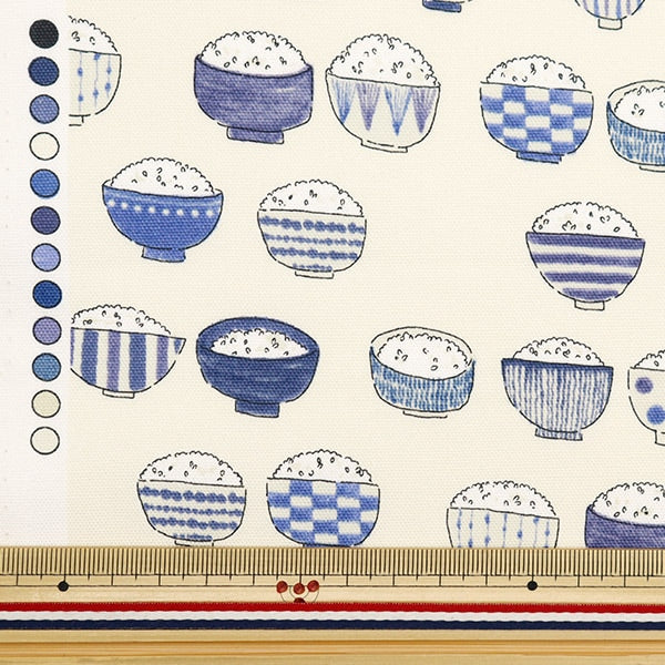 いろいろなお茶碗とたきたてごはん、美味しそうなご飯柄生地です。