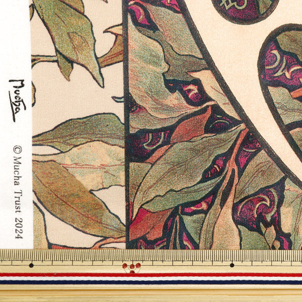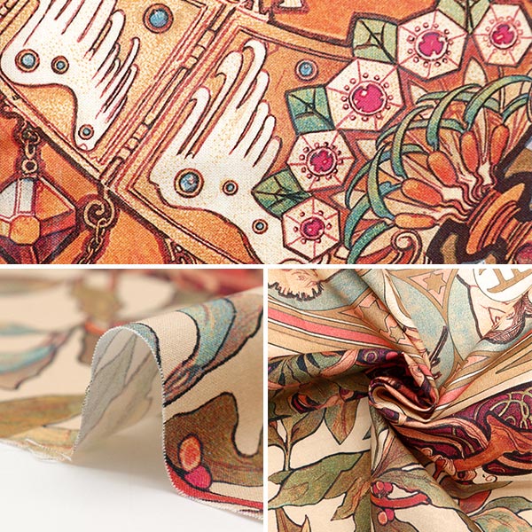 パリで活躍したアール・ヌーヴォーを代表する画家であり、グラフィックアーティストのアルフォンス・マリア・ミュシャの作品がプリントされた生地です。