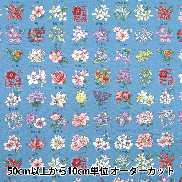【数量5から】 生地 『オックス ご当地シリーズ 花 ブルー YPA-51000-1D』 KOKKA コッカ