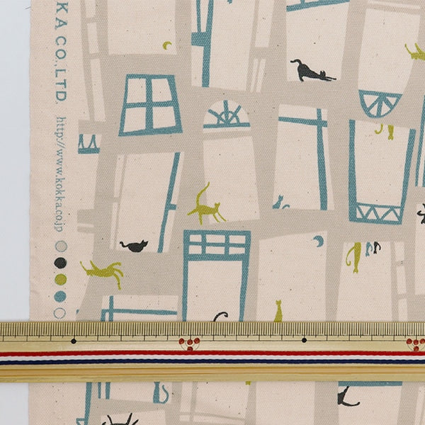 【数量5から】 生地 『オックス Linnea 猫と窓 YKA-26000-3A』 KOKKA コッカ