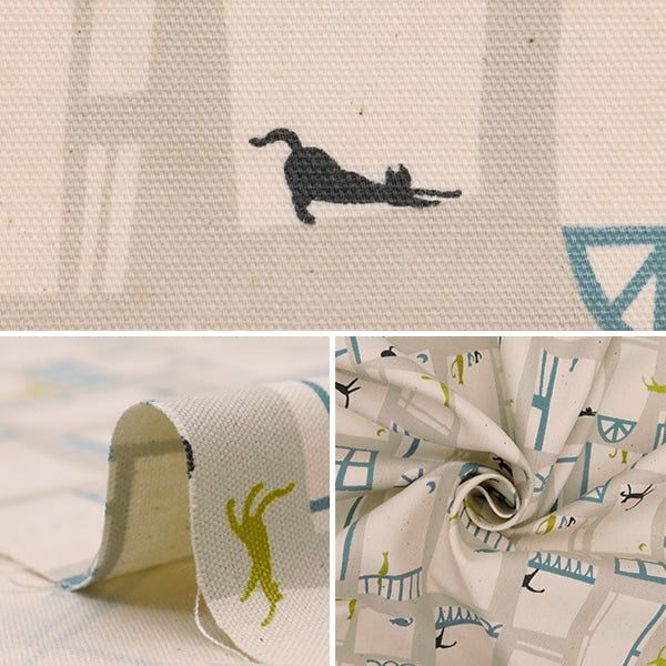 おしゃれな雰囲気の窓と猫が描かれたオックス生地です。