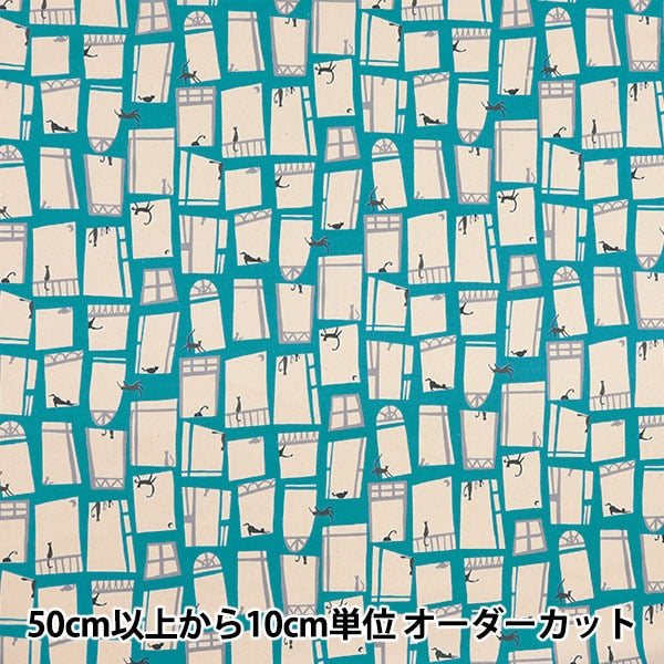[布 オックス 窓 猫 ネコ ねこ ブルー 青色 あおいろ 水色 みずいろ ハンドメイド 手芸 ソーイング]