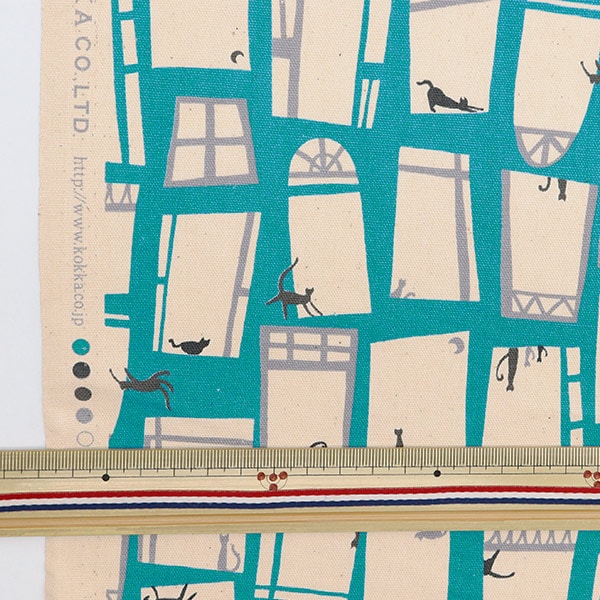 【数量5から】 生地 『オックス Linnea 猫と窓 YKA-26000-3C』 KOKKA コッカ