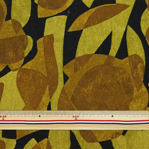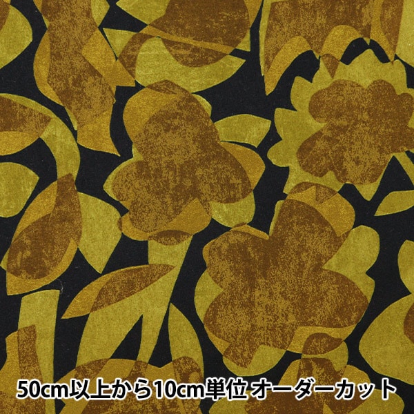 [布 裁縫 洋裁 綿麻 コットンリネン フラワー 花柄 黒 黄色 緑 茶色 ブラウン]
