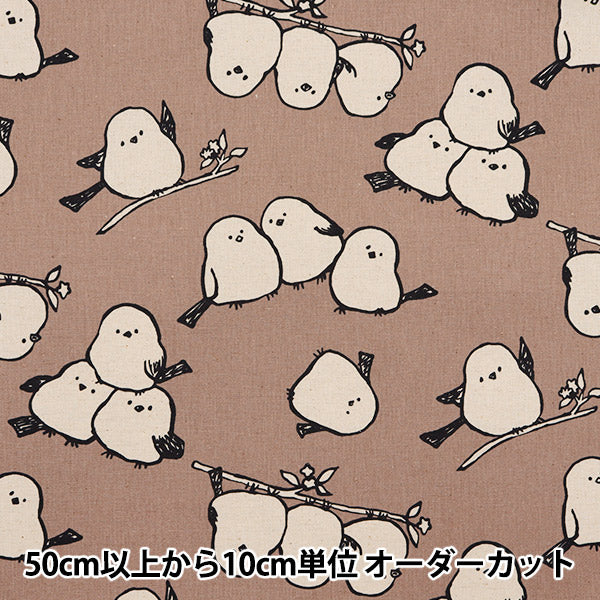 [コットンリネン 布 しまえなが 小鳥 いきもの 雑貨 ベージュ 薄茶]