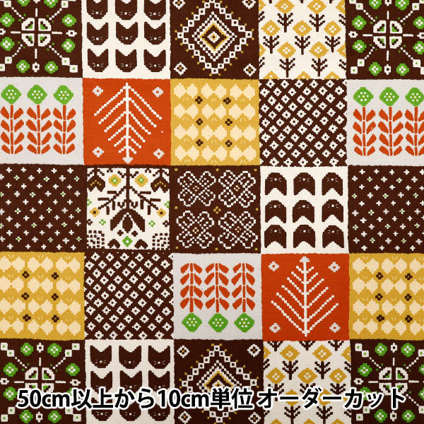 [布 ソーイング 手芸 ハンドメイド ノルディック柄 雑貨 オレンジ 茶色]