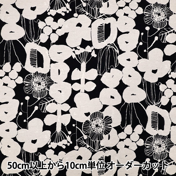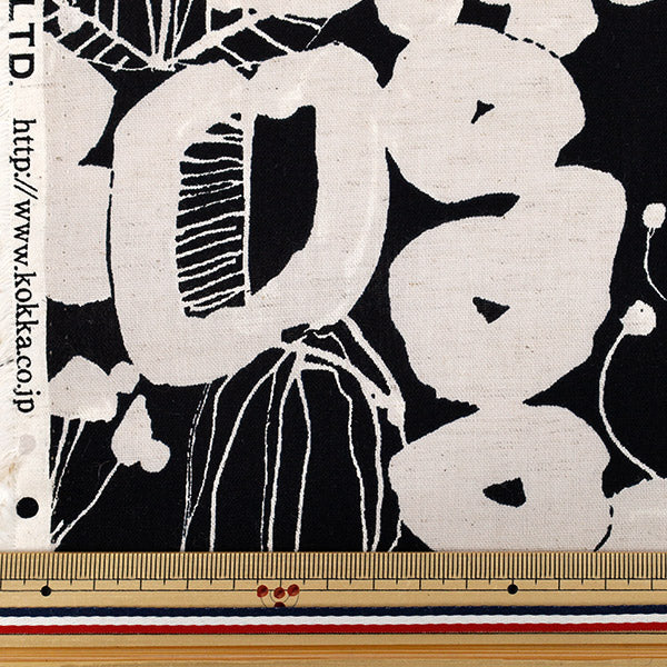 【数量5から】 生地 『綿麻シーチング Linnea 大花柄 ブラック YKA-36060-1D』 KOKKA コッカ