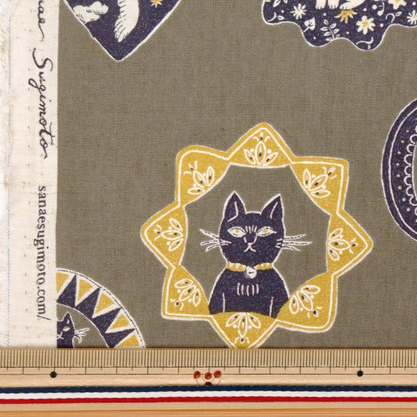 【数量5から】 生地 『綿麻シーチング Sanae Sugimoto Cat Days ブラウン EGX-9230-1D』 KOKKA コッカ