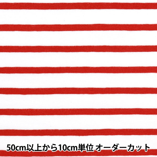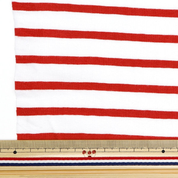 【数量5から】 生地 『DOMOTEX ジャージー マリン太 レッド×ホワイト DOMO-BOR-6』