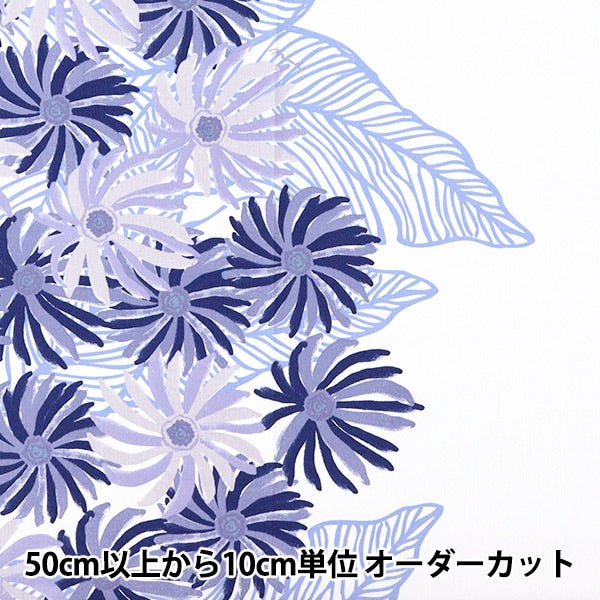 【数量5から】 生地 『マウナロア T/C ハワイアンプリント ガーベラ ホワイト×ブルーYFOP0419』