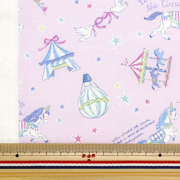 【数量5から】 生地 『シーチング カラフルキャンバス ユニコーンサーカス柄 パープル COCAN-UNI-PP』 KOKKA コッカ