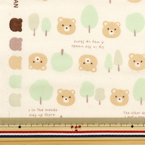 やさしい色合いのくまちゃんと森の木々が並ぶ柄。
