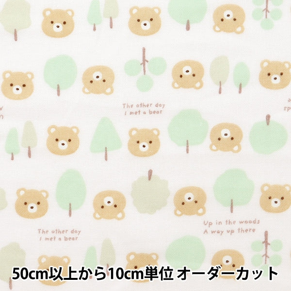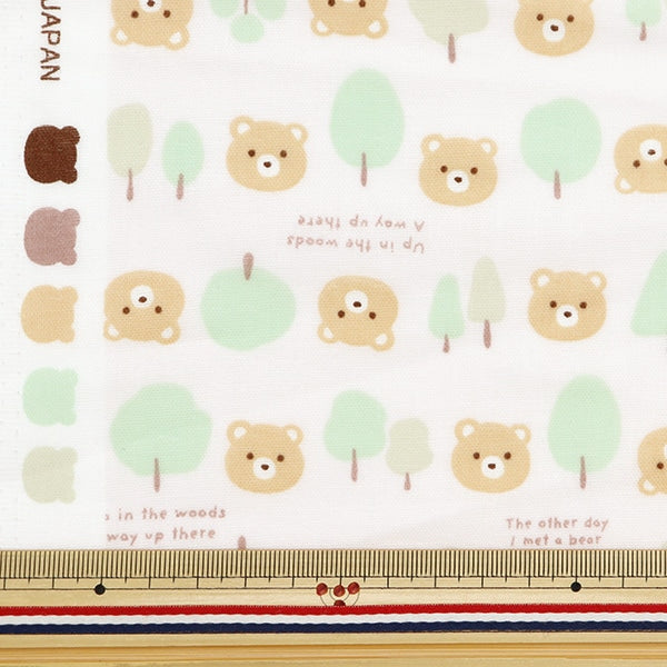 やさしい色合いのくまちゃんと森の木々が並ぶ柄。