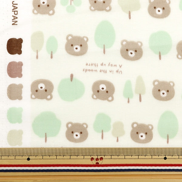 やさしい色合いのくまちゃんと森の木々が並ぶ柄。