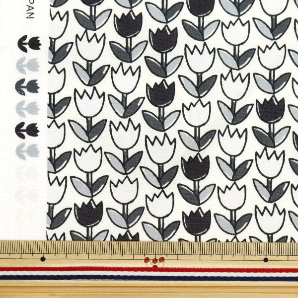 [布 チューリップ柄 花柄 小花柄 ブロード 白黒 モノトーン]