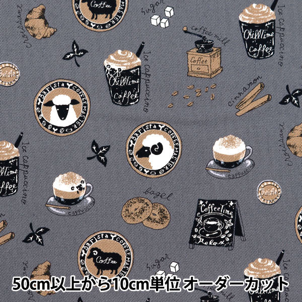 【数量5から】 生地 『ツイル ひつじカフェ グレー TWHCA-GY』