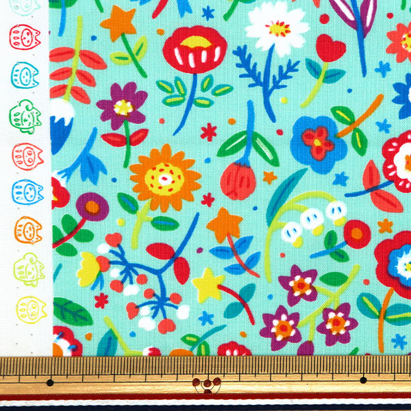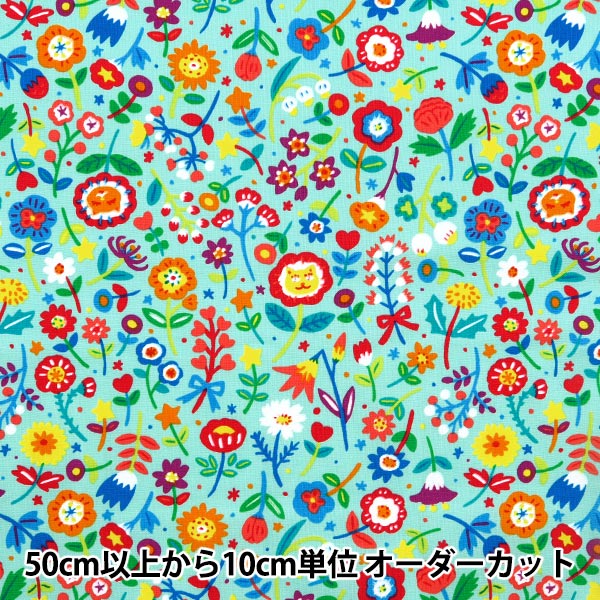 【数量5から】 生地 『シーチング 花ねこ ミントグリーン AI-FLCA-MGN』