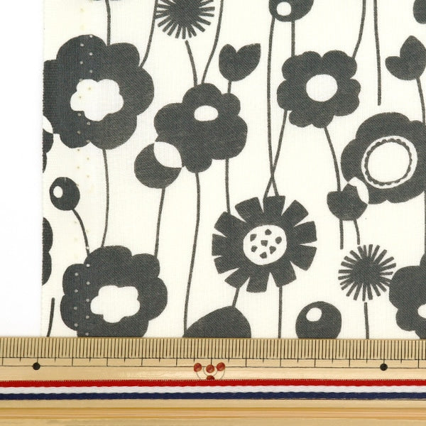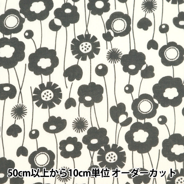 【数量5から】 生地 『シーチング お花とタンポポ ブラック NO-FDAN-E』