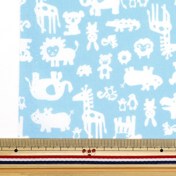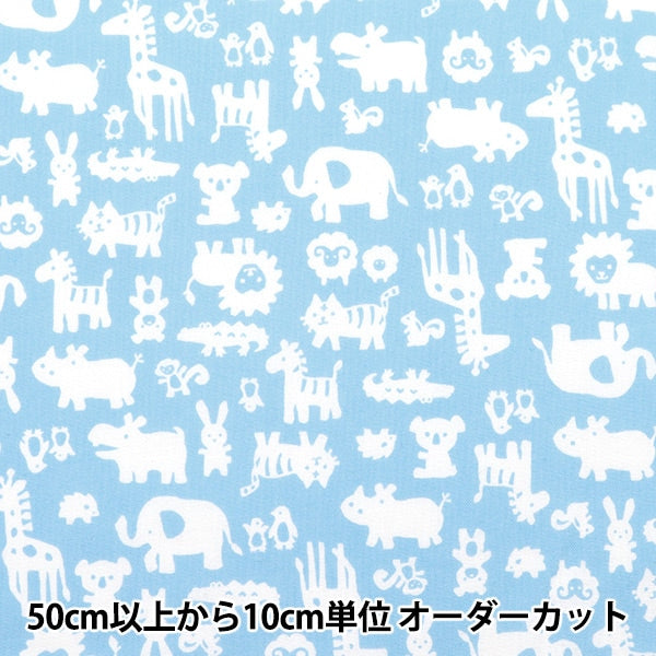 [シーチング 布 ハンドメイド ソーイング アニマル柄 動物柄 青色 水色 ブルー]