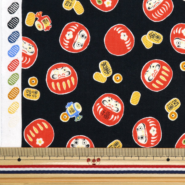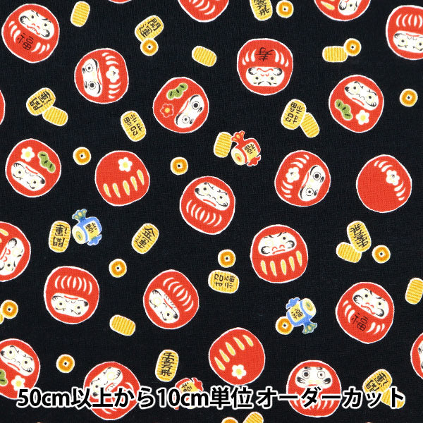[布 生地 和風 和調 和柄 ダルマ 達磨 小判 こばん 黒]