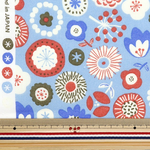 【数量5から】 生地 『スケア 北欧フラワー柄 サックス SQ35901-3C』
