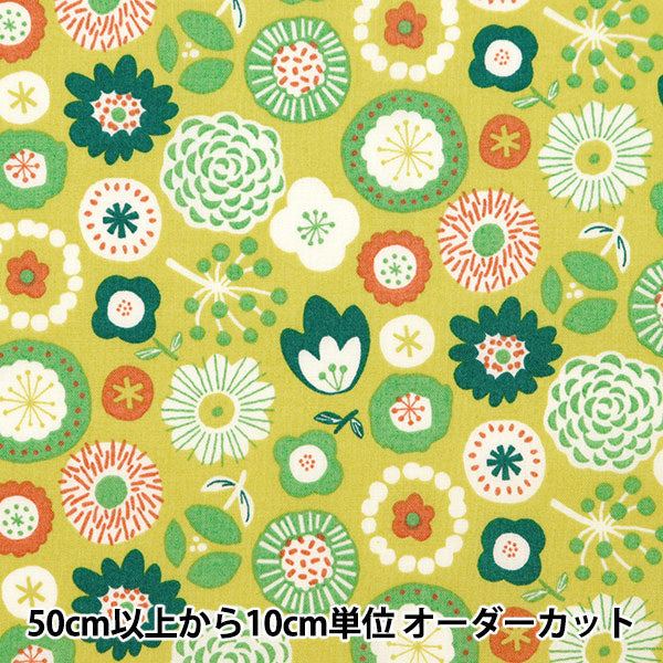【数量5から】 生地 『スケア 北欧フラワー柄 グリーン SQ35901-3D』