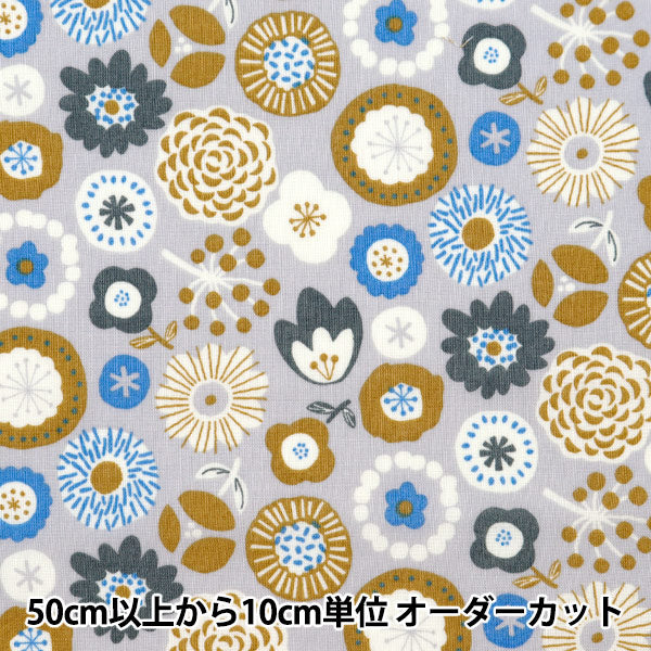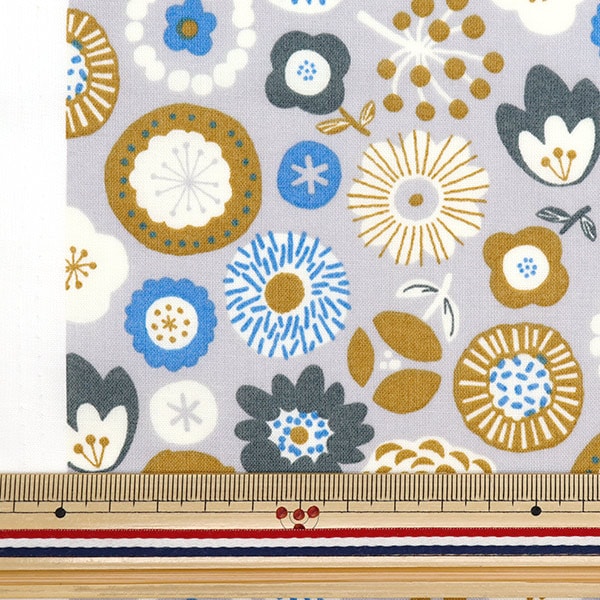 【数量5から】 生地 『スケア 北欧フラワー柄 グレーブラウン SQ35901-3E』