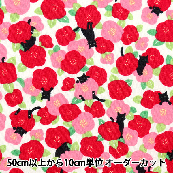 【数量5から】 生地 『スケア プリント 椿ねこ オフホワイト SQ41403-2A』