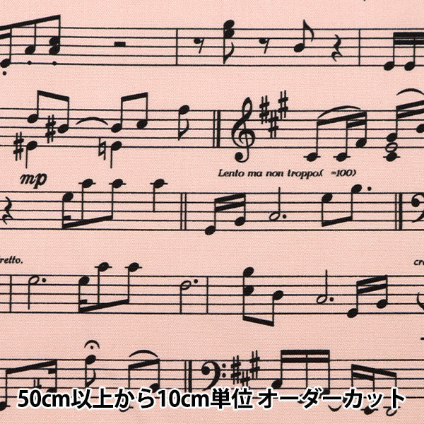 【数量5から】 生地 『オックス 楽譜柄 ピンク OX35408-A』